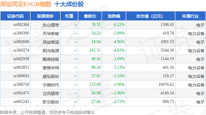 深证民企ESGR(470056)指数十大成份股详情如下: