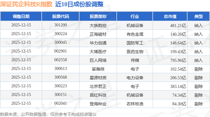 近10日内深证民企科技R(470059)指数成份股做了调整,新纳入了5只股票,剔除了5只股票。