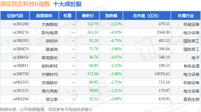 证券之星消息,12月18日,深证民企科技R(470059)指数报收于5488.33点,跌1.64%,成交656.23亿元,换手率1.96%。当日该指数成份股中,上涨的有13家,上海瀚讯以3.66%的涨幅领涨,下跌的有37家,大族数控以5.53%的跌幅领跌。