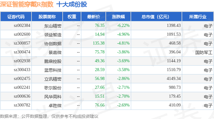 深证智能穿戴R(470074)指数十大成份股详情如下: