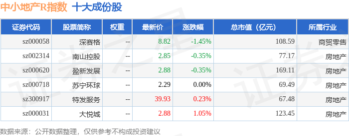 中小地产R(471002)指数十大成份股详情如下: