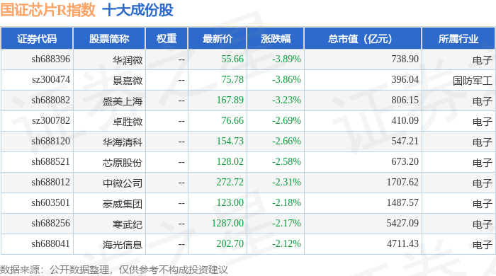 近10日内国证芯片R(480017)指数成份股做了调整,新纳入了1只股票,剔除了1只股票。