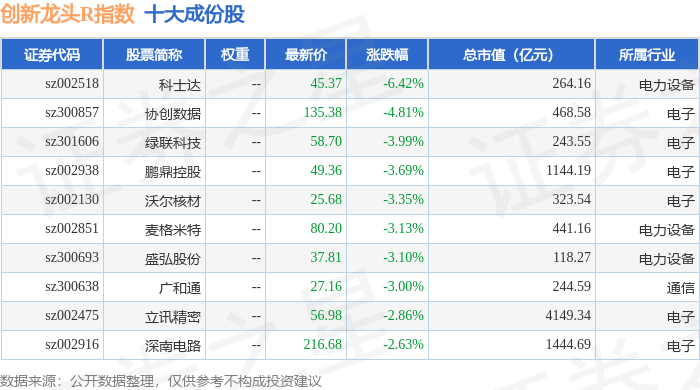 创新龙头R(480036)指数十大成份股详情如下: