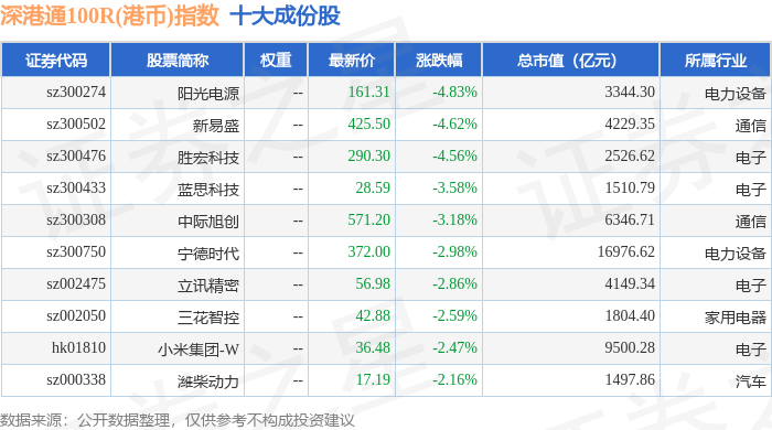 深港通100R(港币)(483008)指数十大成份股详情如下: