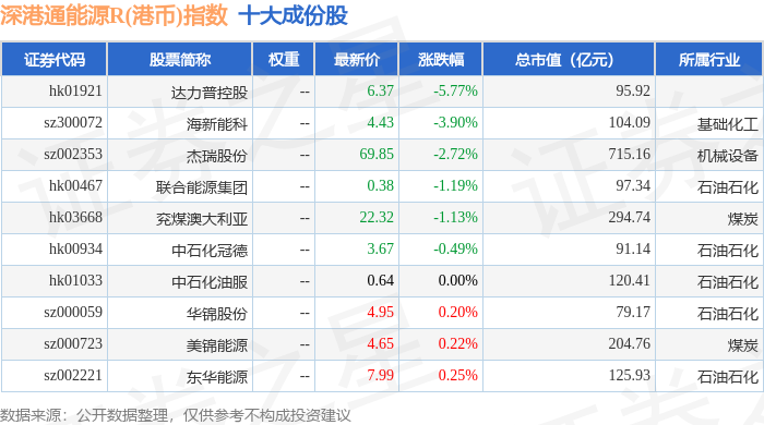 深港通能源R(港币)(483014)指数十大成份股详情如下: