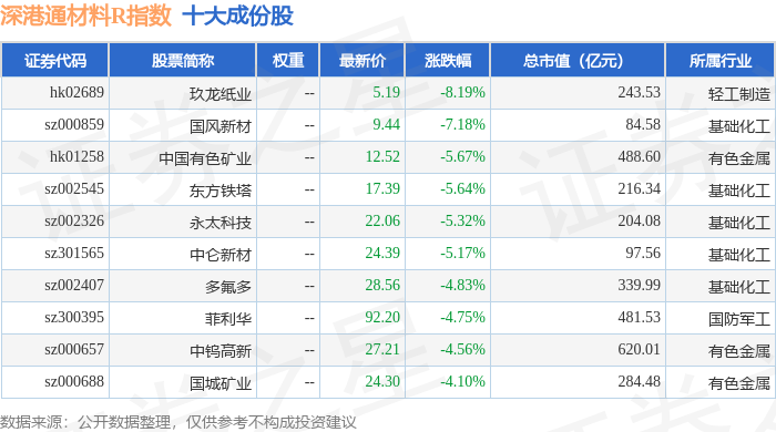 深港通材料R(483015)指数十大成份股详情如下: