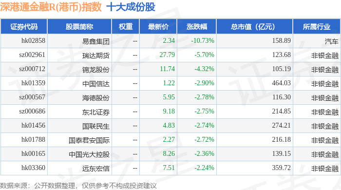 深港通金融R(港币)(483026)指数十大成份股详情如下: