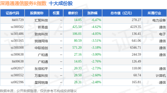 深港通通信服务R(483033)指数十大成份股详情如下: