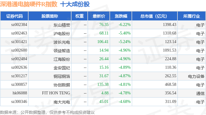 深港通电脑硬件R(483043)指数十大成份股详情如下: