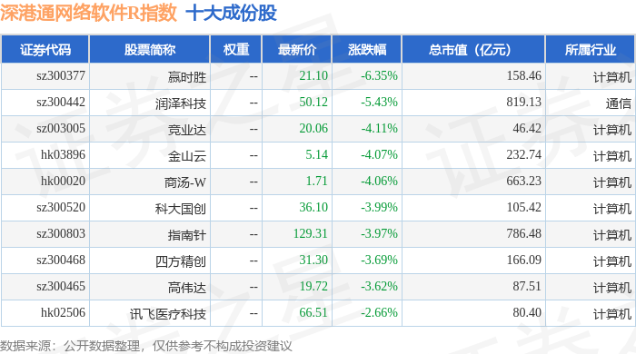 深港通网络软件R(483047)指数十大成份股详情如下: