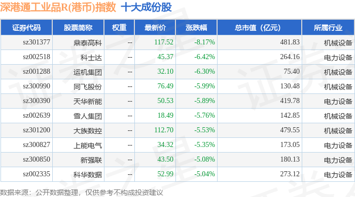 深港通工业品R(港币)(483070)指数十大成份股详情如下: