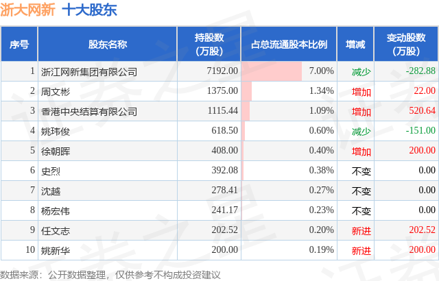根据浙大网新2025年三季报公布的十大股东详情如下: