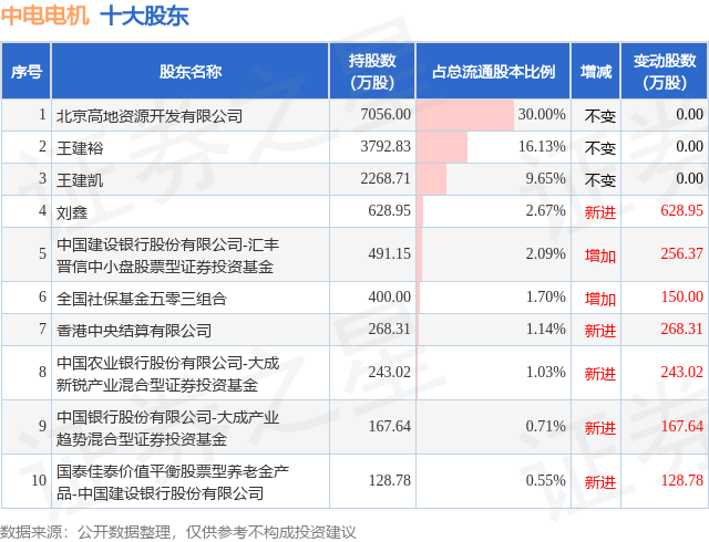 根据中电电机2025年三季报公布的十大股东详情如下: