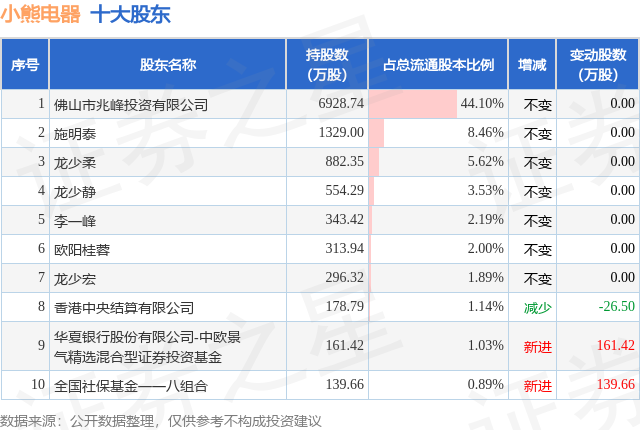 根据小熊电器2025年三季报公布的十大股东详情如下: