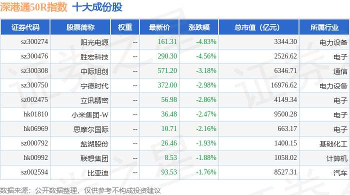 深港通50R(483091)指数十大成份股详情如下: