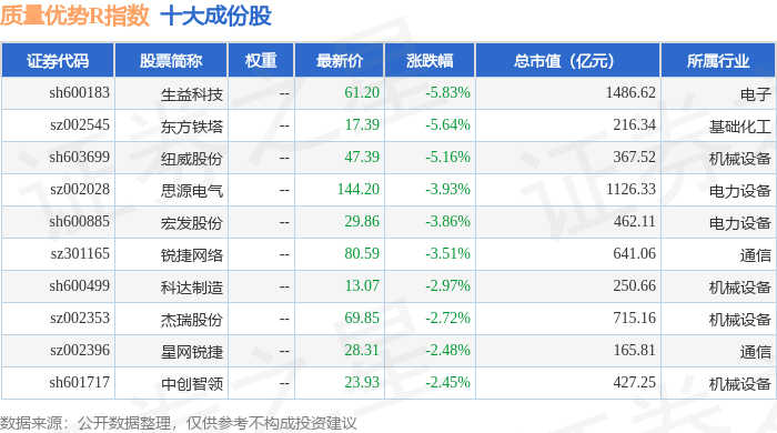 质量优势R(489017)指数十大成份股详情如下: