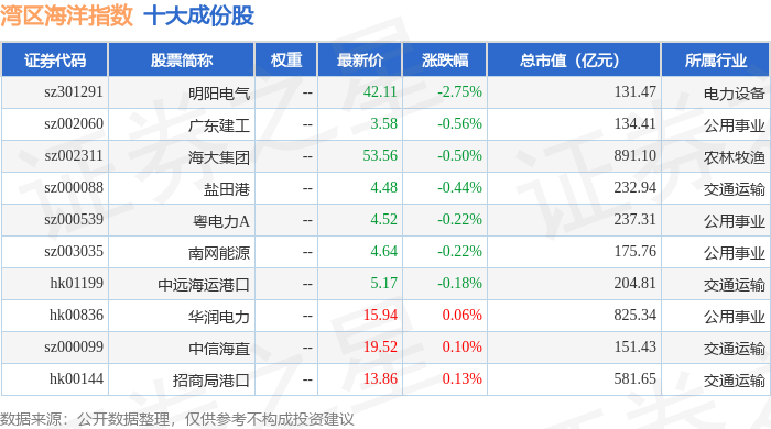 近10日内湾区海洋(980019)指数成份股做了调整,新纳入了2只股票。