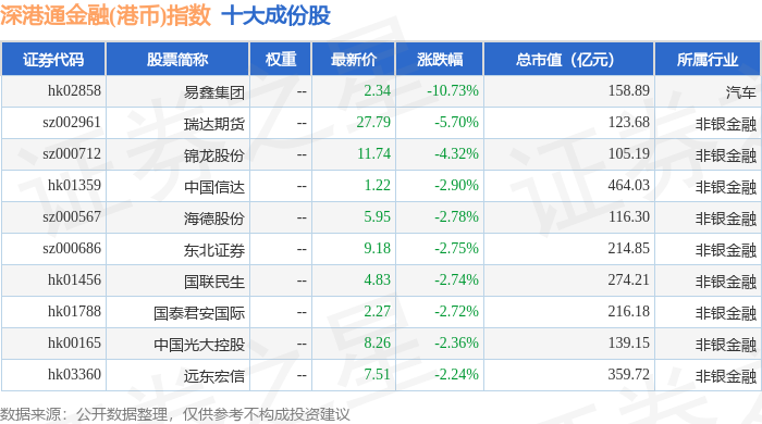 深港通金融(港币)(983026)指数十大成份股详情如下: