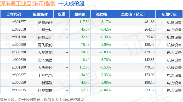 深港通工业品(港币)(983070)指数十大成份股详情如下: