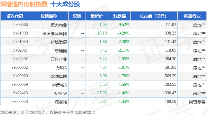 近10日内深港通内房股(983083)指数成份股做了调整,剔除了2只股票。