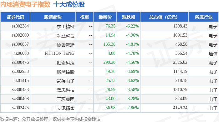 近10日内内地消费电子(983105)指数成份股做了调整,剔除了2只股票。