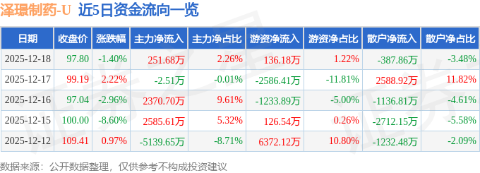 证券之星消息,截至2025年12月18日收盘,泽璟制药(688266)报收于97.8元,下跌1.4%,换手率0.43%,成交量1.13万手,成交额1.11亿元。