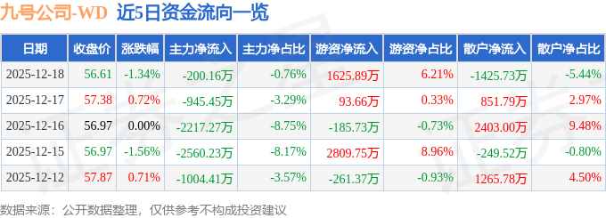 证券之星消息,截至2025年12月18日收盘,九号公司(689009)报收于56.61元,下跌1.34%,换手率0.83%,成交量4.59万手,成交额2.62亿元。