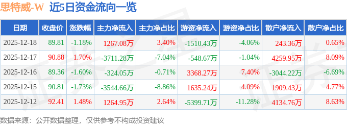 12月18日的资金流向数据方面,主力资金净流入1267.08万元,占总成交额3.4%,游资资金净流出1510.43万元,占总成交额4.06%,散户资金净流入243.36万元,占总成交额0.65%。