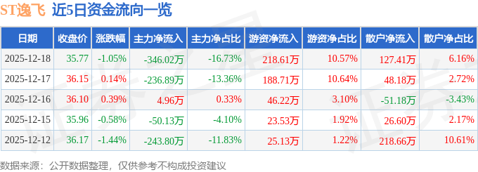 12月18日的资金流向数据方面,主力资金净流出346.02万元,占总成交额16.73%,游资资金净流入218.61万元,占总成交额10.57%,散户资金净流入127.41万元,占总成交额6.16%。