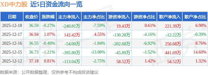 证券之星消息,截至2025年12月18日收盘,XD中力股(603194)报收于36.59元,下跌0.27%,换手率1.68%,成交量8636.0手,成交额3171.78万元。