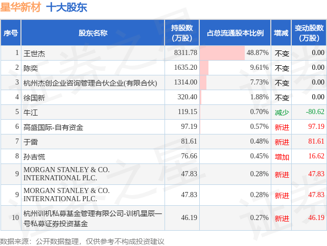 根据星华新材2025年三季报公布的十大股东详情如下: