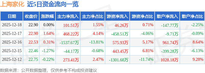 12月18日的资金流向数据方面,主力资金净流入101.51万元,占总成交额1.55%,游资资金净流入46.26万元,占总成交额0.71%,散户资金净流出147.77万元,占总成交额2.25%。