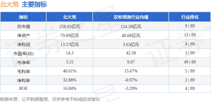 北大荒2025年三季报显示,前三季度公司主营收入41.08亿元,同比下降5.73%;归母净利润13.57亿元,同比上升0.69%;扣非净利润13.5亿元,同比上升0.05%;其中2025年第三季度,公司单季度主营收入10.94亿元,同比下降13.14%;单季度归母净利润3.72亿元,同比上升2.34%;单季度扣非净利润3.67亿元,同比下降0.69%;负债率25.66%,投资收益951.54万元,财务费用-1173.88万元,毛利率40.61%。北大荒(600598)主营业务:主要从事耕地发包经营;谷物、豆类、油料等作物的种植及销售;农业技术开发、技术咨询、技术服务及技术转让;信息处理和储存支持服务;仓储服务;房地产开发经营;食品生产经营;粮食收购;肥料制造及销售(仅限分支机构经营);牲畜饲养等。