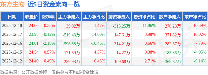 证券之星消息,截至2025年12月18日收盘,东方生物(688298)报收于24.06元,上涨0.33%,换手率0.55%,成交量1.1万手,成交额2658.04万元。