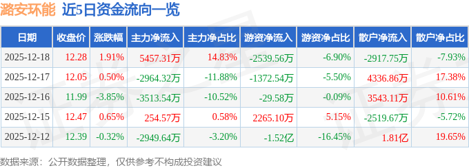 证券之星消息,截至2025年12月18日收盘,潞安环能(601699)报收于12.28元,上涨1.91%,换手率1.0%,成交量30.04万手,成交额3.68亿元。
