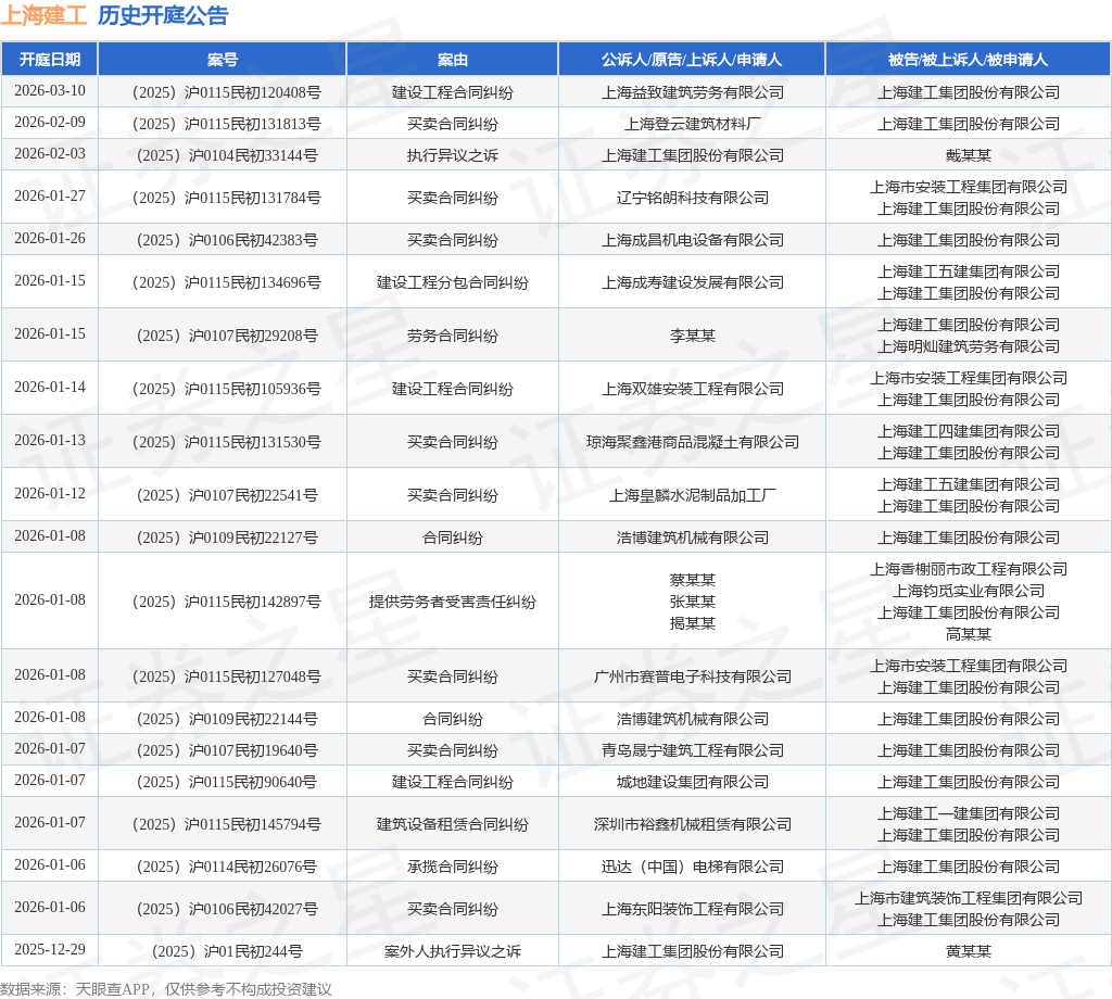 证券之星消息,根据天眼查APP显示,近日公布了一则上海建工集团股份有限公司作为被告/被上诉人的开庭公告,详细内容如下: