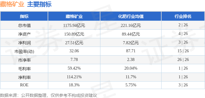 该股主要指标及行业内排名如下: