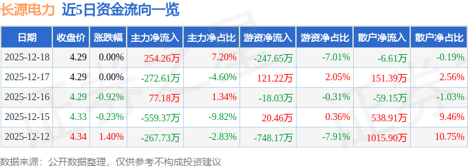 证券之星消息,截至2025年12月18日收盘,长源电力(000966)报收于4.29元,上涨0.0%,换手率0.25%,成交量8.23万手,成交额3531.85万元。
