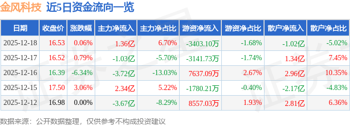 证券之星消息,截至2025年12月18日收盘,金风科技(002202)报收于16.53元,上涨0.06%,换手率3.65%,成交量122.39万手,成交额20.31亿元。