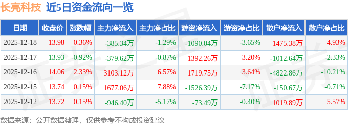 证券之星消息,截至2025年12月18日收盘,长亮科技(300348)报收于13.98元,上涨0.36%,换手率3.01%,成交量21.32万手,成交额2.99亿元。
