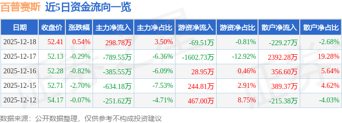 12月18日的资金流向数据方面,主力资金净流入298.78万元,占总成交额3.5%,游资资金净流出69.51万元,占总成交额0.81%,散户资金净流出229.27万元,占总成交额2.68%。