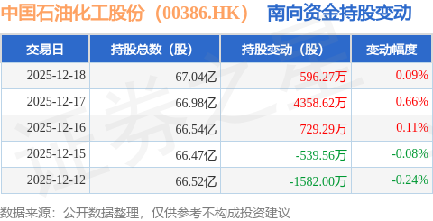 证券之星消息,12月18日南向资金增持596.27万股中国石油化工股份(00386.HK)。近5个交易日中,获南向资金增持的有3天,累计净增持3562.62万股。近20个交易日中,获南向资金增持的有13天,累计净增持1.25亿股。截至目前,南向资金持有中国石油化工股份(00386.HK)67.04亿股,占公司已发行普通股的27.98%。