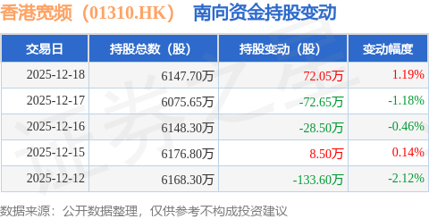 证券之星消息,12月18日南向资金增持72.05万股香港宽频(01310.HK)。近5个交易日中,获南向资金减持的有3天,累计净减持154.2万股。近20个交易日中,获南向资金减持的有15天,累计净减持843.45万股。截至目前,南向资金持有香港宽频(01310.HK)6147.7万股,占公司已发行普通股的4.15%。