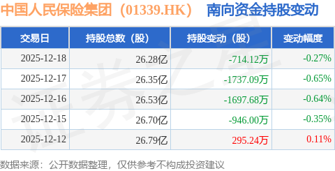 证券之星消息,12月18日南向资金减持714.12万股中国人民保险集团(01339.HK)。近5个交易日中,获南向资金减持的有4天,累计净减持4799.65万股。近20个交易日中,获南向资金减持的有10天,累计净减持3027.7万股。截至目前,南向资金持有中国人民保险集团(01339.HK)26.28亿股,占公司已发行普通股的30.11%。