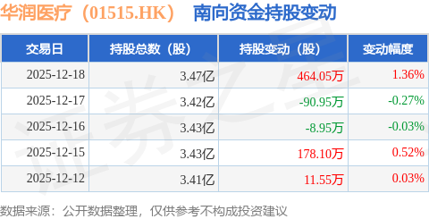 证券之星消息,12月18日南向资金增持464.05万股华润医疗(01515.HK)。近5个交易日中,获南向资金增持的有3天,累计净增持553.8万股。近20个交易日中,获南向资金增持的有15天,累计净增持1568.15万股。截至目前,南向资金持有华润医疗(01515.HK)3.47亿股,占公司已发行普通股的26.74%。