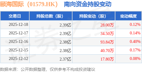 证券之星消息,12月18日南向资金增持28.0万股颐海国际(01579.HK)。近5个交易日中,获南向资金增持的有5天,累计净增持214.84万股。近20个交易日中,获南向资金增持的有16天,累计净增持989.68万股。截至目前,南向资金持有颐海国际(01579.HK)2.39亿股,占公司已发行普通股的23.05%。