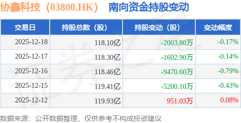 证券之星消息,12月18日南向资金减持2003.8万股协鑫科技(03800.HK)。近5个交易日中,获南向资金减持的有4天,累计净减持1.73亿股。近20个交易日中,获南向资金减持的有14天,累计净减持5.23亿股。截至目前,南向资金持有协鑫科技(03800.HK)118.1亿股,占公司已发行普通股的35.54%。