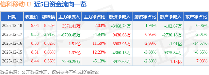 证券之星消息,截至2025年12月18日收盘,信科移动(688387)报收于9.04元,上涨8.52%,换手率9.85%,成交量198.55万手,成交额17.56亿元。