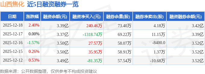 山西焦化融资融券信息显示,融资方面,当日融资买入892.94万元,融资偿还652.48万元,融资净买入240.46万元。融券方面,融券卖出5.66万股,融券偿还1.48万股,融券余量73.4万股,融券余额281.86万元。融资融券余额3.42亿元。