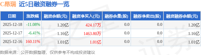 C昂瑞融资融券信息显示,融资方面,当日融资买入5645.27万元,融资偿还5221.1万元,融资净买入424.17万元,连续3日净买入累计1.2亿元。融券方面,融券卖出0.0股,融券偿还0.0股,融券余量0.0股,融券余额0.0万元。融资融券余额1.2亿元。